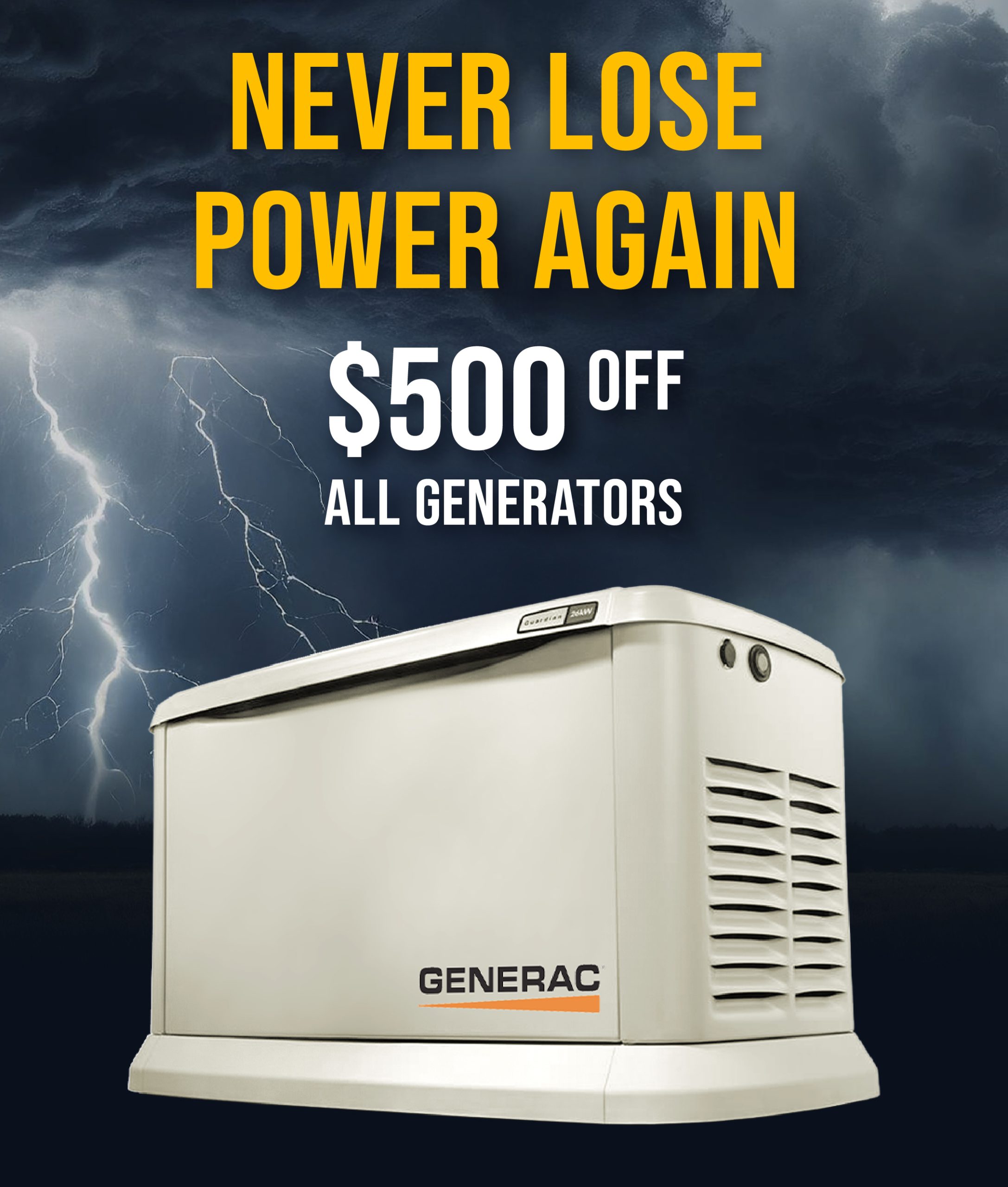 Get $500 off all standby generators from Colonial Generators. Stay safe, connected, and worry-free during any outage with expert installation and reliable backup power